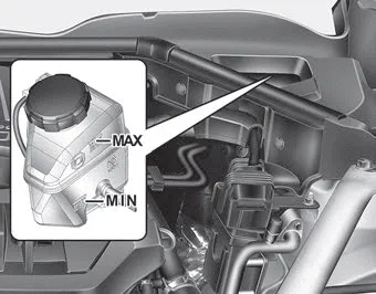 Check the fluid level in the reservoir periodically. The fluid level should be between MAX (Maximum) and MIN (Minimum) marks on the side of the reservoir.