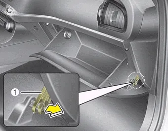 2. With the glove box open, pull the support strap (1).
