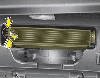 The climate control air filter should be replaced according to the Maintenance Schedule. If the vehicle is operated in severely air-polluted cities or on dusty rough roads for a long period, it should be inspected more frequently and replaced earlier. When you replace the climate control air filter, replace it performing the following procedure, and be careful to avoid damaging other components.