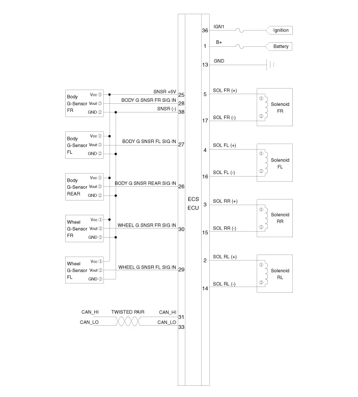 4. Rear ECS Damper 5. Body G Sensor |