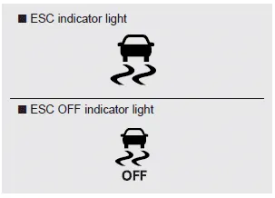 When ignition switch is turned to ON, the indicator light illuminates, then goes off if the ESC system is operating normally.