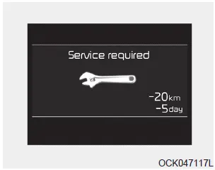 From the point at which the remaining distance to drive amounts to 1,500 km (900 mi.) or the remaining time amounts to 3 days, the Service Required message automatically displays and remains on the LCD screen for a number of seconds every time the engine start/stop button is ON.