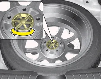 2. Turn the tire hold-down wing bolt counterclockwise with the jack handle.