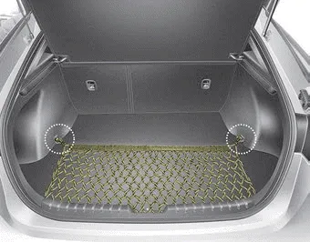 To keep items from shifting in the cargo area, you can use the holders located in the cargo area to attach the luggage net.