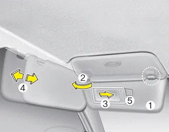 If you use the vanity mirror lamp, turn off the lamp before returning the sunvisor to its original position, otherwise it could result in battery discharge and possible sunvisor damage.