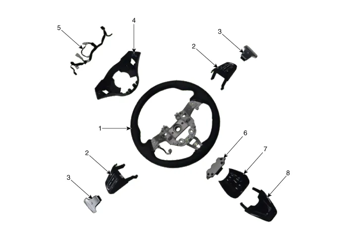| 1. Steering wheel body 2. Remote control switch 3. Paddle shift 4. Lower cover |