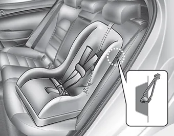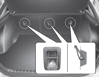 2. Connect the tether strap hook to the tether anchor, then tighten the tether strap according to the child seat manufacturer’s instructions to firmly secure the child restraint to the seat.