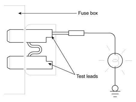 A blade type fuse test taps are provided for checking the fuse itself without removing it from the fuse box. The fuse is good if the test lamp lights up when one lead is connected to the test taps (one at a time) and the other lead is grounded. (Switch "ON" the ignition to make the fuse circuit operative.)