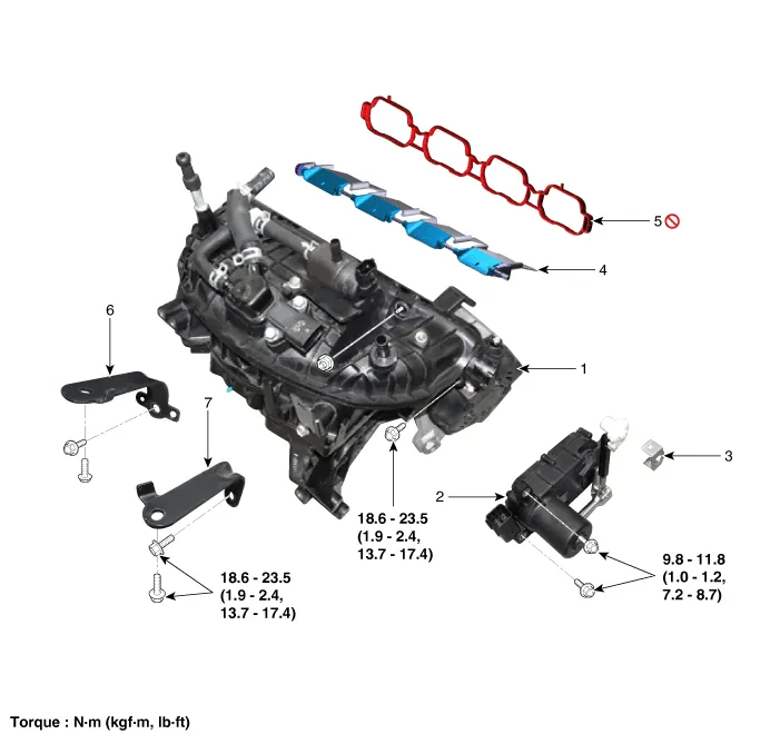 5. Intake manifold gasket 6. Intake manifold bracket (LH) 7. Intake manifold bracket (RH) |