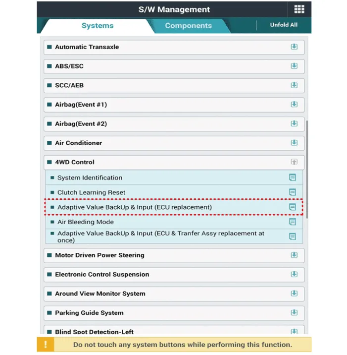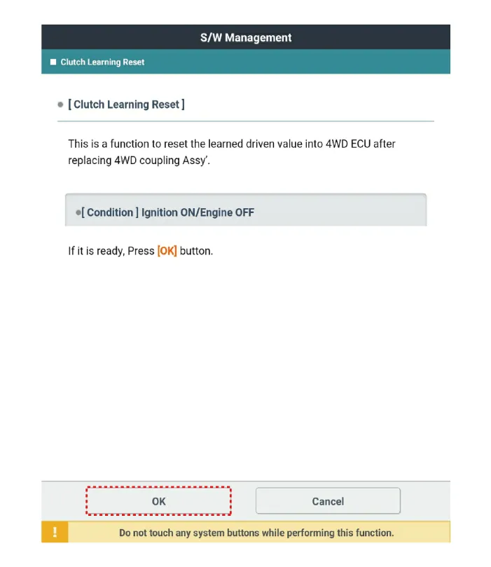 It is necessary to check and input the calibration data and vehicle variant code when the controller is replaced as the characteristics of the internal frictional materials (clutch pack) change due to driving.