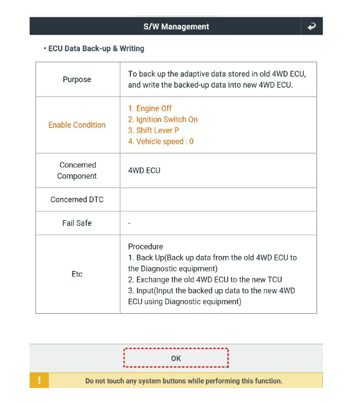 In case of replacing the transfer case and ECU.
