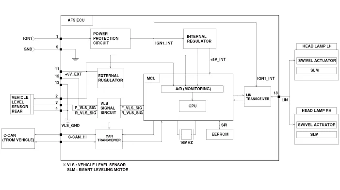 AFS located in Cockpit Module is provided information of vehicle (steering wheel signal, vehicle speed, inclination of vehicle).