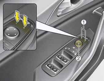 The outside rearview mirror can be folded or unfolded by pressing the switch as below.