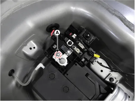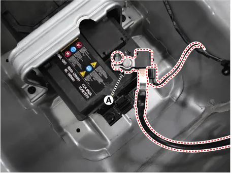 Tighten battery clamp (A) on battery negative (-) terminal.