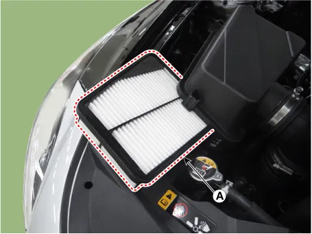 Open the air cleaner element cover (A) by unlocking the clamp.