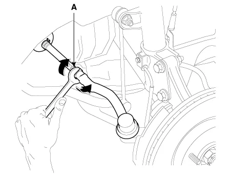 Adjust rear toe by turning the rear assist arm cam bolt (A) clockwise or counter clockwise. Toe adjustment should be made by turning the right and left cam bolts by the same amount.