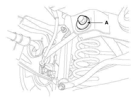 Adjust rear camber by turning the rear lower arm cam bolt (A) clockwise or counterclockwise. Camber adjustment should be made by turning the right and left cam bolt by the same amount.