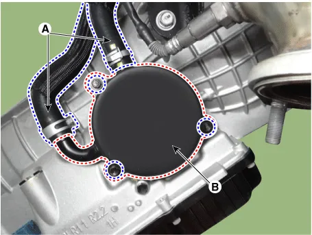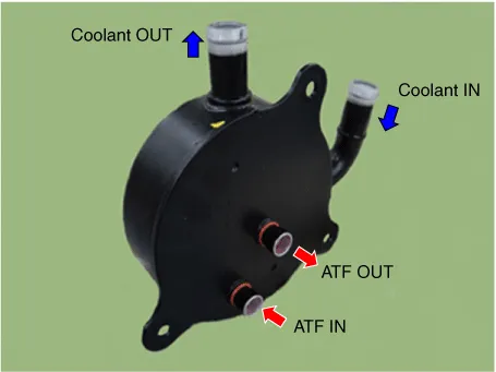 Separate the coolant hose (A) and remove the ATF warmer (B) after loosening the bolts.