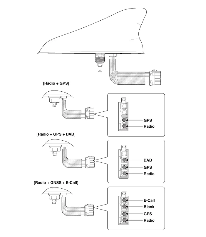 Connect the roof antenna main connector and roof antenna power connecter. |