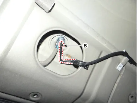 Disconnect the roof antenna main connector (A) and roof antenna power connector (B).