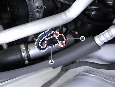 Remove the mounting bolts (B), and then remove the sensor from the intercooler