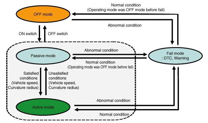 If BCW & LCA operation fails in any mode, Fail mode is on. |