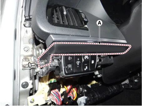 Remove the crash pad garnish [LH] (A) after loosening the mounting screw.