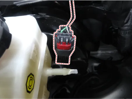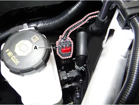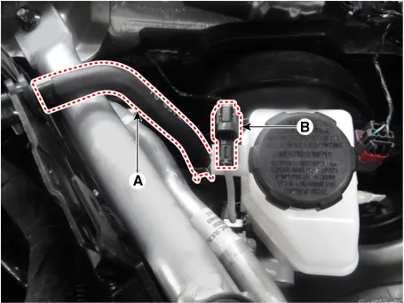 Disconnect the brake vacuum hose (A) and brake fluid level sensor connector (B).
