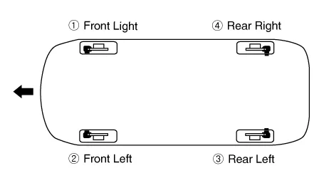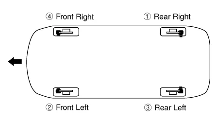 Repeat the procedure for all wheels in the sequence shown below until air bubbles no longer appear in the fluid. [Normal brake]
