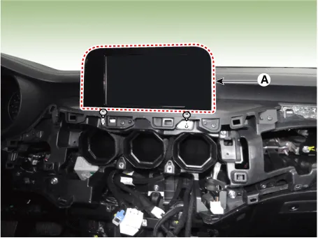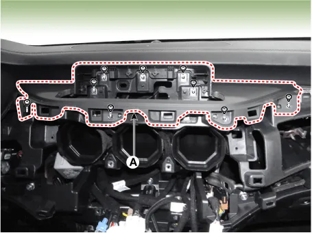 Remove the crash pad garnish [RH] (A) after loosening the mounting screws.