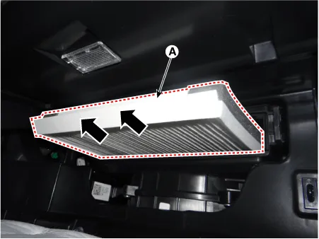Replace the air filter (A) according to the replacement cycle on the user manual. When replacing it, mind the direction of the air filter.