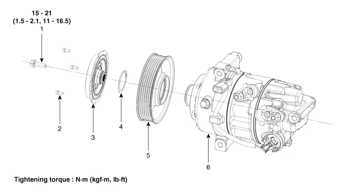 4. Snap Ring 5. Pulley 6. Compressor Assembly |