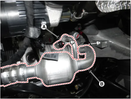 Remove the engine room under cover. D 2.0 R VGT (Refer to Engine Mechanical System - "Engine Room Under Cover") G 2.0 T-GDI-THETA (Refer to Engine Mechanical System - "Engine Room Under Cover") G 3.3 T-GDI-LAMBDA (Refer to Engine Mechanical System - "Engine Room Under Cover") |