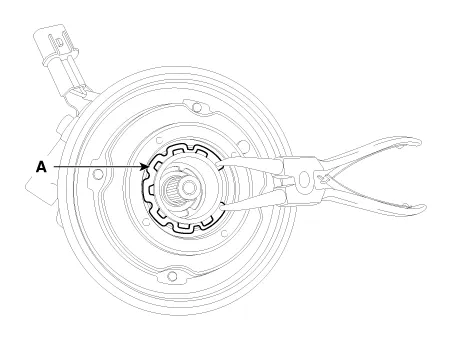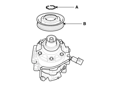 Remove the pulley (B) after removing the snap ring (A) with snap ring pliers.