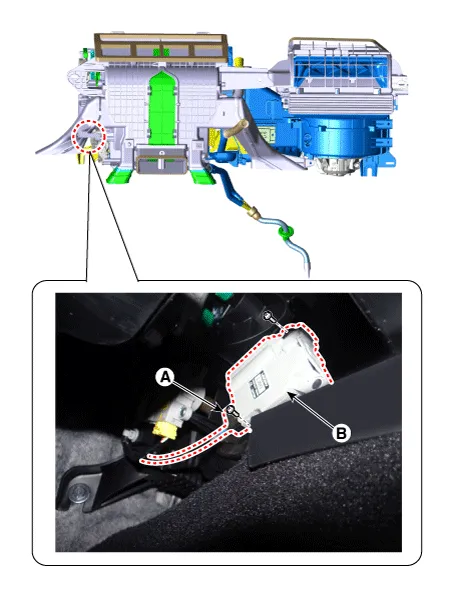 Disconnect the connector (A) and then remove the temperature control actuator (B) after loosening the mounting screws.