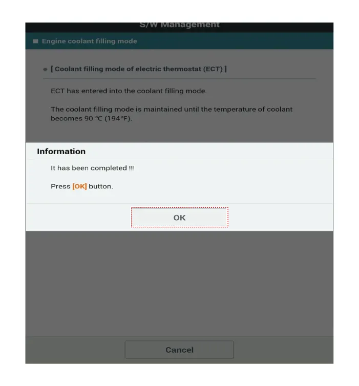 When the engine coolant filling mode completed, press the "OK".