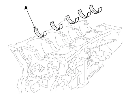 Place the crankshaft (A) on the cylinder block.