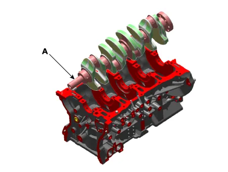 Lift the crankshaft (A) out of the engine, being careful not to damage journals.