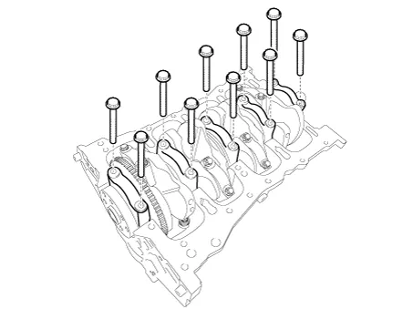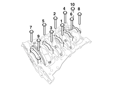 Install the main bearing cap bolts.