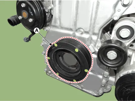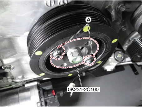 Install the SST (0K231-2C100) on the crankshatf damper pulley, and then tighten the bolts (A).