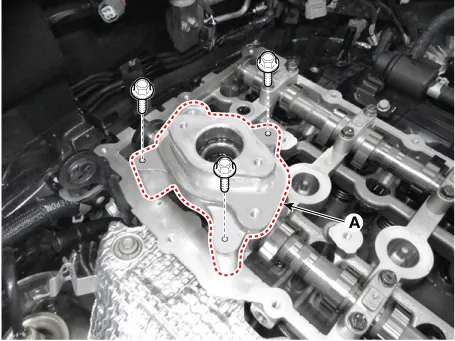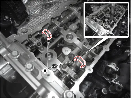 Insert the E-CVVT cover plug so that the protrusion (A) reach to E-CVVT