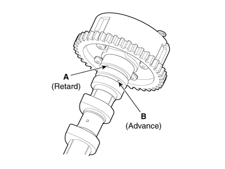 Exhaust CVVT : Seal one of the two retard holes in the camshaft