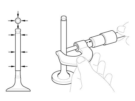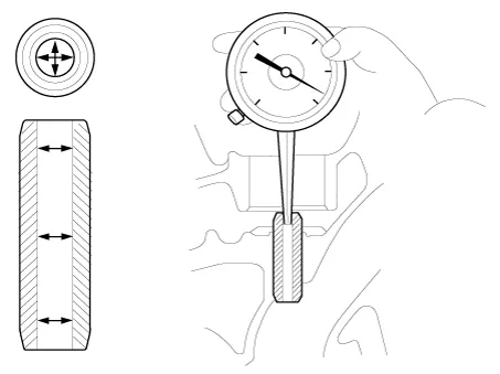 Using a caliper gauge, measure MLA tappet bore inner diameter of cylinder head.