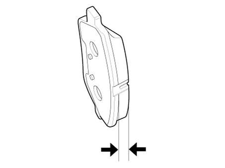 Check the pad wear. Measure the pad thickness and replace it, if it is less than the specified value.