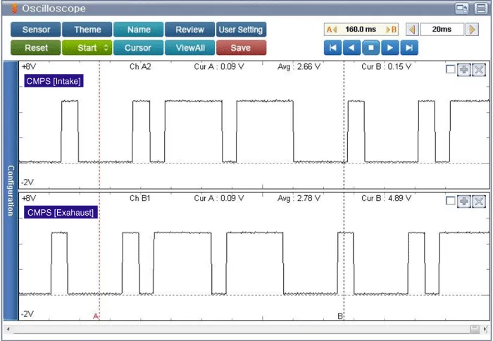 There is no separate sensor inside E-CVVT. Valve timing is calculated by applying 4-flank type target wheel on the exhaust side and comparing CKPS and CMPS. |