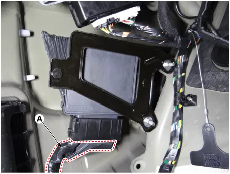 Loosen the ECS control unit bracket nut and then remove the ECS control unit (A).