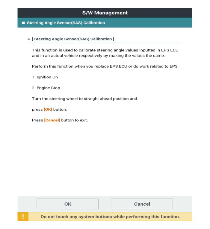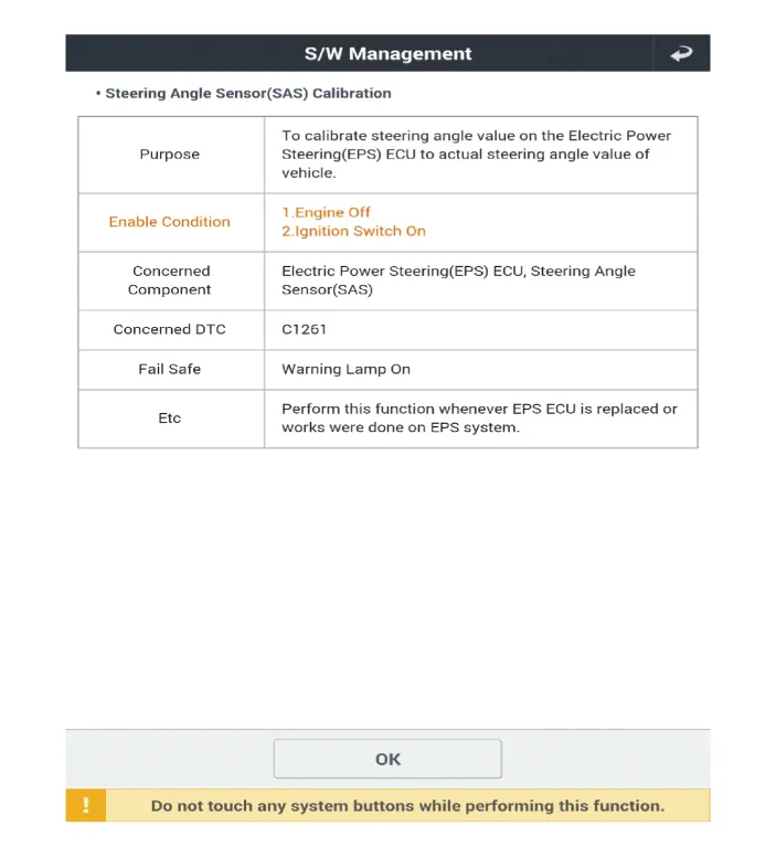 Caution for ASP (Absolute Steering Position) calibration or EPS type recognition