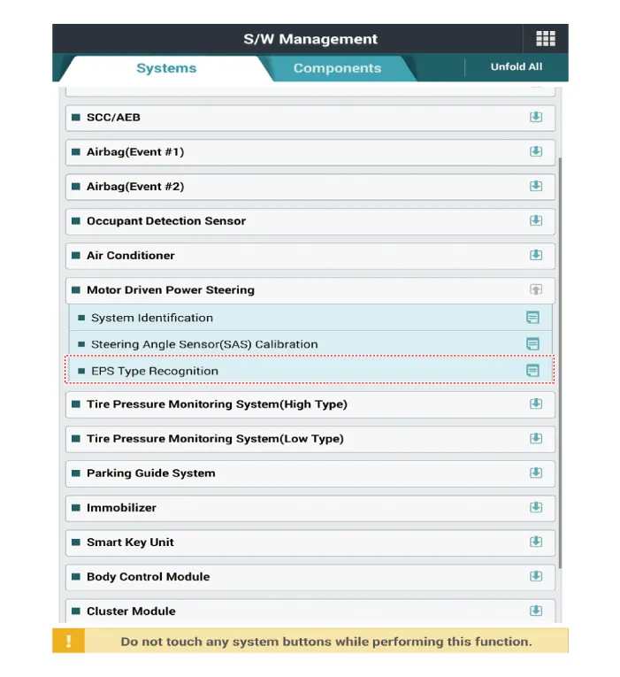 Be careful not to disconnect any cables connected to the vehicle or scan tool during ASP calibration or EPS type recognition. |