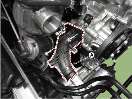 For release the tension, turn the drive belt tensioner (A) counterclockwise