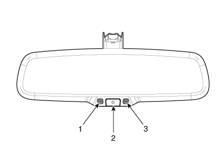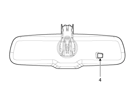 The ECM is darkened to the level as determined by the rearward looking sensor. When the glaring is no longer detected, the mirror stops functioning. (1. LED indicator, 2. ON/OFF Switch, 3. Rearward looking sensor, 4. Forward looking sensor)